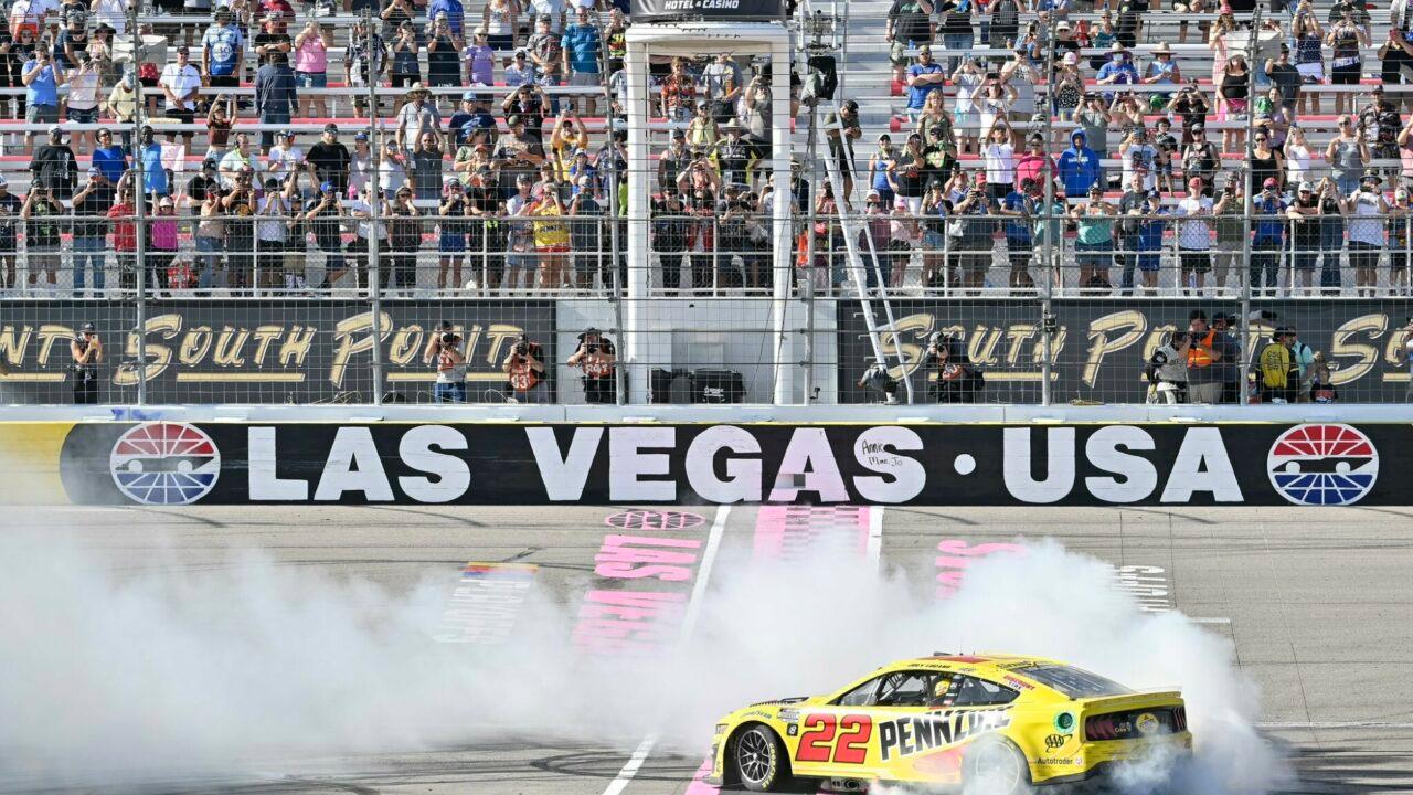 Team Penske's Joey Logano became the first driver to secure a position in the Championship 4 with a shot at the NASCAR Cup Series 2022 Championship thanks to a valiant surge to victory in the final laps of Sunday’s South Point 400 at Las Vegas Motor Speedway.
