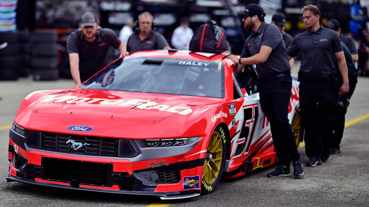 Haley's car passed pre-race inspection on Saturday afternoon prior to the start of NASCAR Cup Series practice, but NASCAR determined that the team made an unapproved adjustment to the No. 51 Ford Mustang Dark Horse.